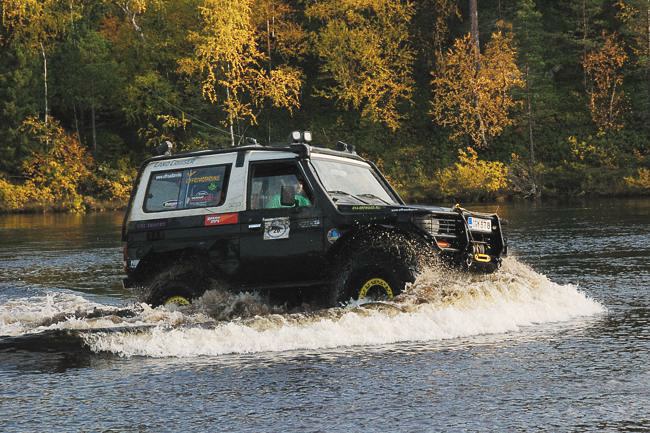 Финиширует финский экипаж Timo Lipponena, Risto Riihimaki и Павел Скородумов на Toyota Land Cruiser KZJ73: штурм реки Печа прошел успешно.