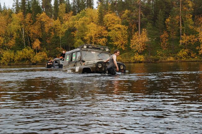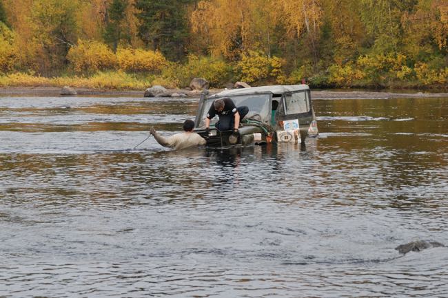 УАЗ Марата и Алексея обошел плотно сидящий норвежский экипаж, и устремился на другой берег. Однако не дойдя немного до финиша, заглох. Алексею снова пришлось продолжить активные водные процедуры, на этот раз с лебедкой: заводить «нахлебавшийся» воды УАЗик было нельзя.
