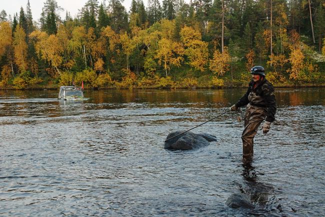 Коварное течение реки Печа подхватило Range Rover TDI норвежского экипажа Haraldseth Kristian и Carl Gustav Thingelstad словно бумажный кораблик и бросило на камень.