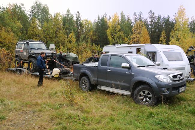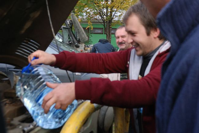 Прибывшие Алексей и Дмитрий принесли печальную весть: УАЗ Михаила Петрова и Ивана Черникова встал из-за бензина - приобретенное в Мончегорске топливо оказалось разбавлено водой. Бывшие неподалеку мурманчане Андрей Жидконогов и Александр Глебов остались с ними, чтобы не бросать экипаж в беде. Поскольку уже темнело, операция по вызволению пострадавшего от нечистоплотности продавцов бензина экипажа была перенесена на завтра. Мы же поехали на ночевку неподалеку - энтузиасты водных заполярных процедур нуждались в тепле и еде.