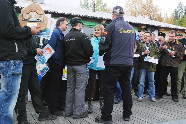Утром в ожидании раскрытия главной интриги участники выстроились на поляне перед сценой. После правильно выдержанной паузы, церемония награждения началась. Один за другим выходили участники арктического внедорожного марафона, чтобы получить свои награды. Итак, кто же победители?