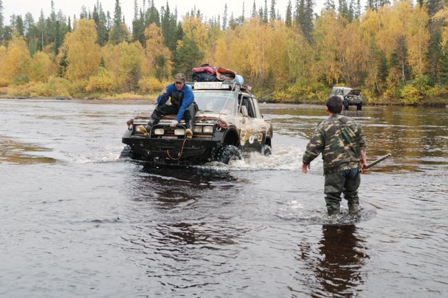 Пока украинский экипаж Журавлева Виктора, Сыроветника Александра и Наавгуста Евгения решает, как выбраться из западни, реку Печу штурмуют еще два экипажа. УАЗ еще одной мурманской команды Кукушкина Виктора и Шишова Вячеслава перебирается через стремнину, а квадроцикл Кортса Айварса «едет» верхом на катамаране.