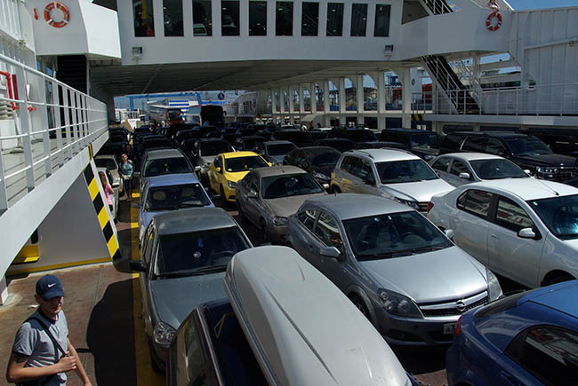 Главная проблема при поездке в Крым это, пожалуй, переправа. Как ни крути, но она и стоит не дёшево (в нашем случае это было 2700 рублей), а занимает целых три часа. И это с учетом, что билеты покупаются заранее. Если же покупать их на переправе, то нужно накидывать еще час.