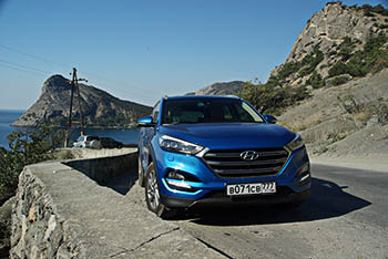 Также хорошо подходят для тестов горные дороги и перевалы Крыма. Hyundai Tucson справляется с ними на пять баллов, уверенно входя в повороты и тяговито идя в гору. Имеющихся 150-ти сил вполне хватает для всех режимов работы - как на скоростных участках, так и для передвижения в сложных условиях.