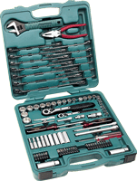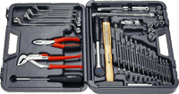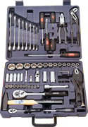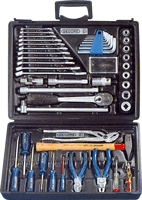 ОСОБЕННОСТИ: состав набора подобран так, чтобы при минимальном количестве инструментов решать максимум технических проблем. Каждая деталь надежно закреплена в чемодане в отведенном ей месте. Хотя набор является дорожным, все входящие в него инструменты профессионального уровня и могут использоваться в автомастерских.ДИЗАЙН И МАТЕРИАЛЫ: чемодан изготовлен из дутого полипропилена, невосприимчив к воздействию масел, ударопрочный, термостойкий. Металлические части всех инструментов, кроме латунного пробника, изготовлены из хром-ванадиевой стали. Они имеют специальную матовую обработку поверхности, которая защищает детали от коррозии, а также позволяет при работе максимально избежать проскальзывания в руке. Рабочие концы отверток оксидированы, что придает им дополнительную износостойкость. Форма их ручек обеспечивает удобный захват и максимальную передачу усилия, а сделаны они из целлюлозоацетата, который не боится даже «сотрудничества» с молотком. В них также существуют специальные отверстия, в которые можно вставлять вороток для увеличения крутящего момента. Головка молотка покрыта особым черным лаком, а ударные поверхности отшлифованы. Рукоятка имеет утолщение посередине для более удобного захвата рукой. Следует отметить накидные части у комбинированных ключей. Они отличаются волнообразной формой профиля «UnitDriv», при которой площадь соприкосновения ключа и гайки больше, а сила распределена более равномерно и приложена к плоскостям граней, а не к углам, как у рожковых ключей. РЕЗЮМЕ: по цене набор является малодоступным для частного применения, но тот, кто позволит себе его приобрести, не пожалеет о своем выборе.Если вы когда нибудь меняли