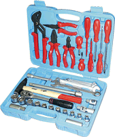 ОСОБЕННОСТИ: среди универсальных наборов данный комплект является одним из самых скромных по количеству предметов, однако здесь есть практически все, что требуется для обслуживания автомобиля в дороге.ДИЗАЙН И МАТЕРИАЛЫ: инструменты упакованы в ударопрочный кейс, удобный для переноски. Монолитные детали – ключи и головки – изготовлены из хром-ванадиевой стали с матовым хромовым покрытием. Трещотка, пассатижи и бокорезы имеют ручки, покрытые изолирующим пластиком. Интересно отметить, что рабочие части пассатижей, бокорезов и плоскогубцев покрыты антикоррозионным черным лаком, что позволяет использовать инструменты во влажных условиях. Таким же лаком покрыта головка молотка, а ее ударная поверхность отшлифована. РЕЗЮМЕ: стоимость набора одна из самых низких для подобной продукции на отечественном рынке, качество инструментов претензий не вызывает. Хороший вариант не только для автомобиля, но и для бытовых работ.