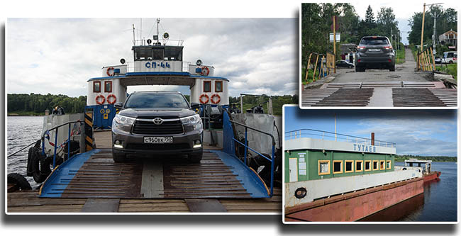Связь между романовской и борисоглебской стороной города — только через паром. Днем он ходит раз в час. В другое время и другие дни очередь, возможно, бывает, но мы оказались чуть ли не единственной машиной на пароме. Заезжают на паром задом, перепады высоты достаточно заметные, поэтому мы еще раз порадовались выбору машины – у Toyota Highlander и клиренс большой, и электронные помощники для комфортной езды задом присутствуют.