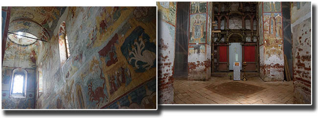 Восстанавливать здесь есть что – работы непочатый край. Ценность храма не только духовная, но и художественная. Роспись храма осуществлялась в 17-м веке артелью костромских и ярославских иконописцев при участии Василия Ильина, Сергия Рожкова и Гурия Никитина, которого иногда называют «последним великим художником Древней Руси». Любопытна роспись не только тем, что ей более 350-ти лет. Храм создавался во времена ожидания Конца Света в 1666-м году. И мотивы Апокалипсиса, не характерные для русских храмов, являются ведущими для многих фресок.