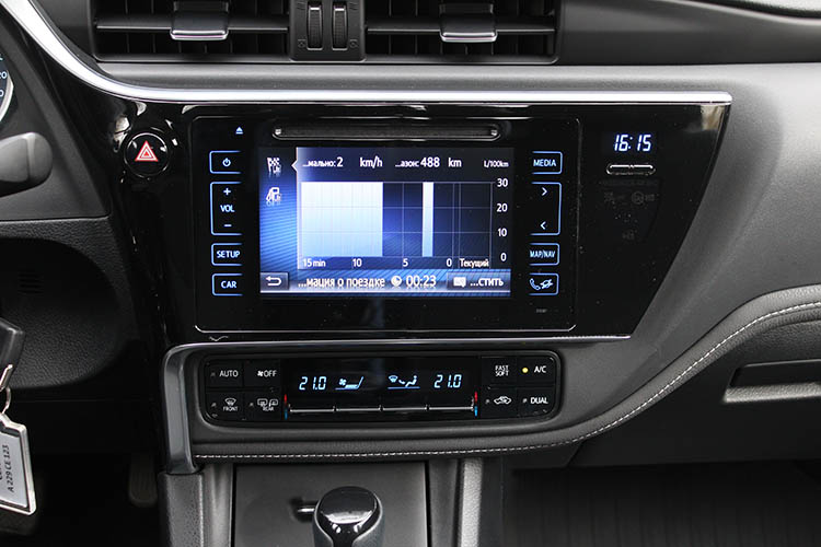 В целом обстановка в салоне Toyota Corolla в богатой комплектации такая, что есть ощущение, что сидишь в автомобиле более высокого класса.