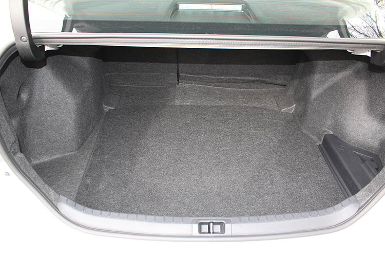 Организацию пространства багажного отсека нельзя назвать идеальной. Он достаточно вместительный, но проем узковат, массивные колесные арки и петли существенно ограничивают объем. Отделка простенькая, приспособлений для крепления багажа не предусмотрено. Лючка для длинномеров нет, спинки задних кресел складываются раздельно, но при этом ровная площадка не получается.