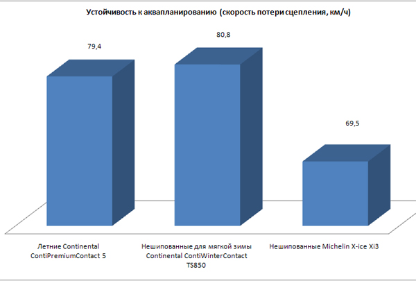 Устойчивость к аквапланированию (Скорость потери сцепления, км/ч)