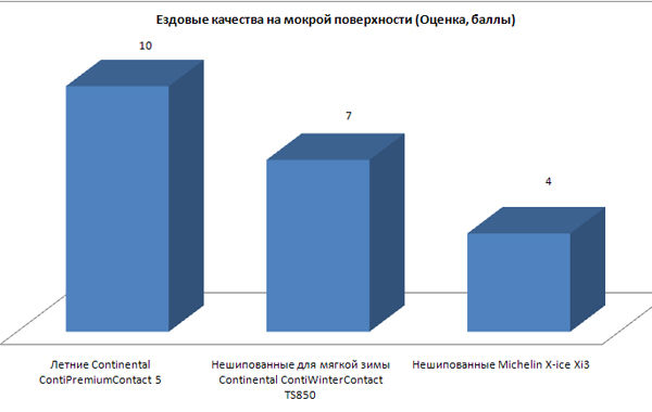 Ездовые качества на мокрой поверхности (Оценка, баллы)