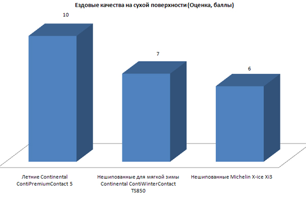 Ездовые качества на сухой поверхности (Оценка, баллы)